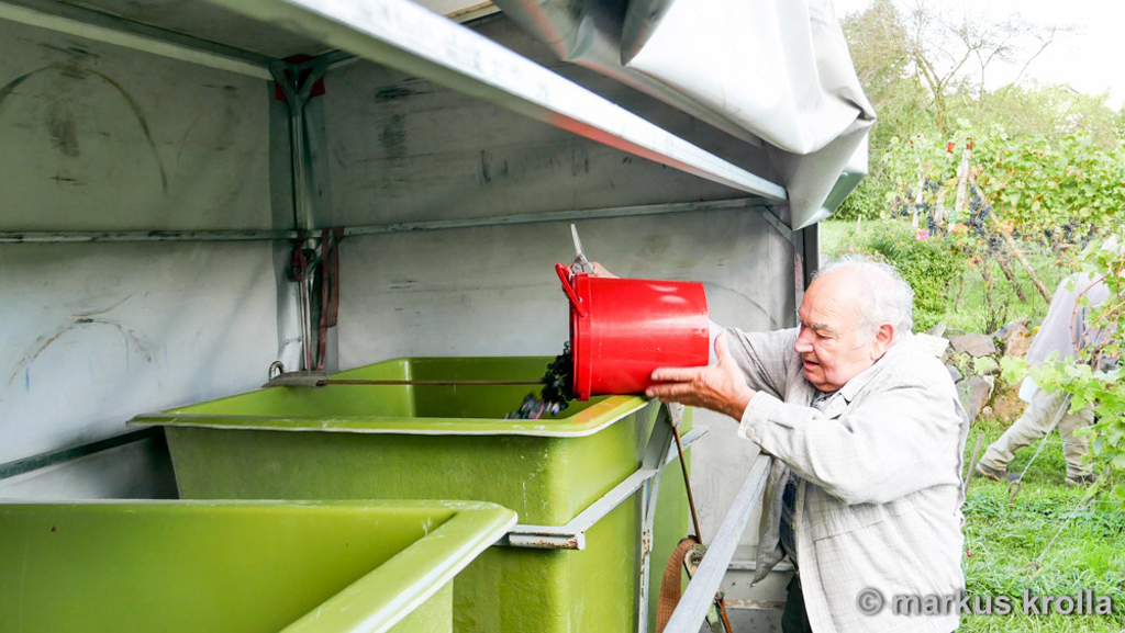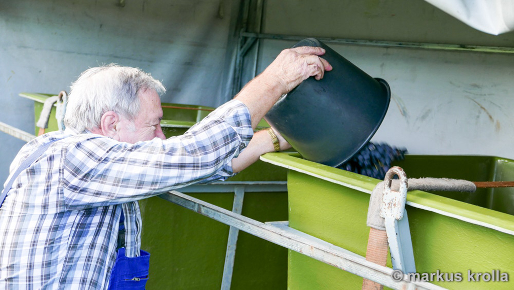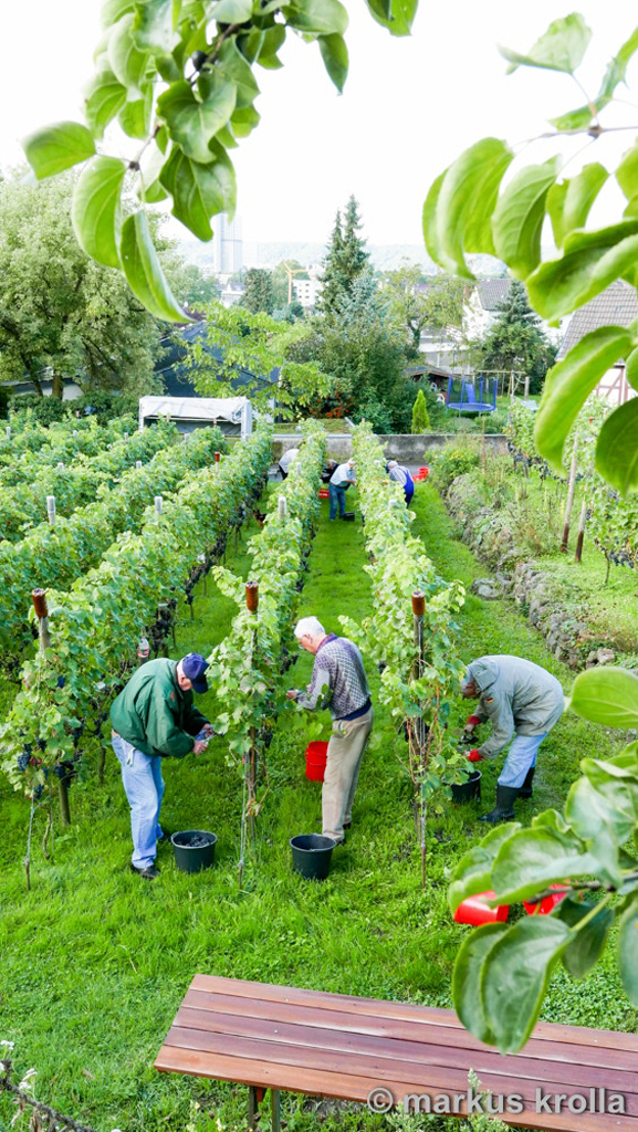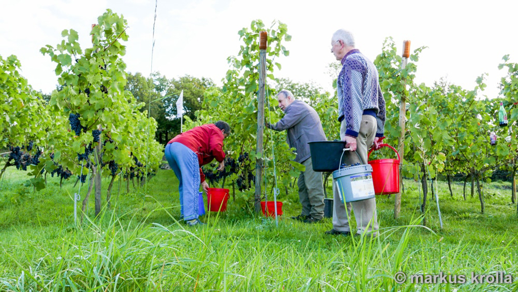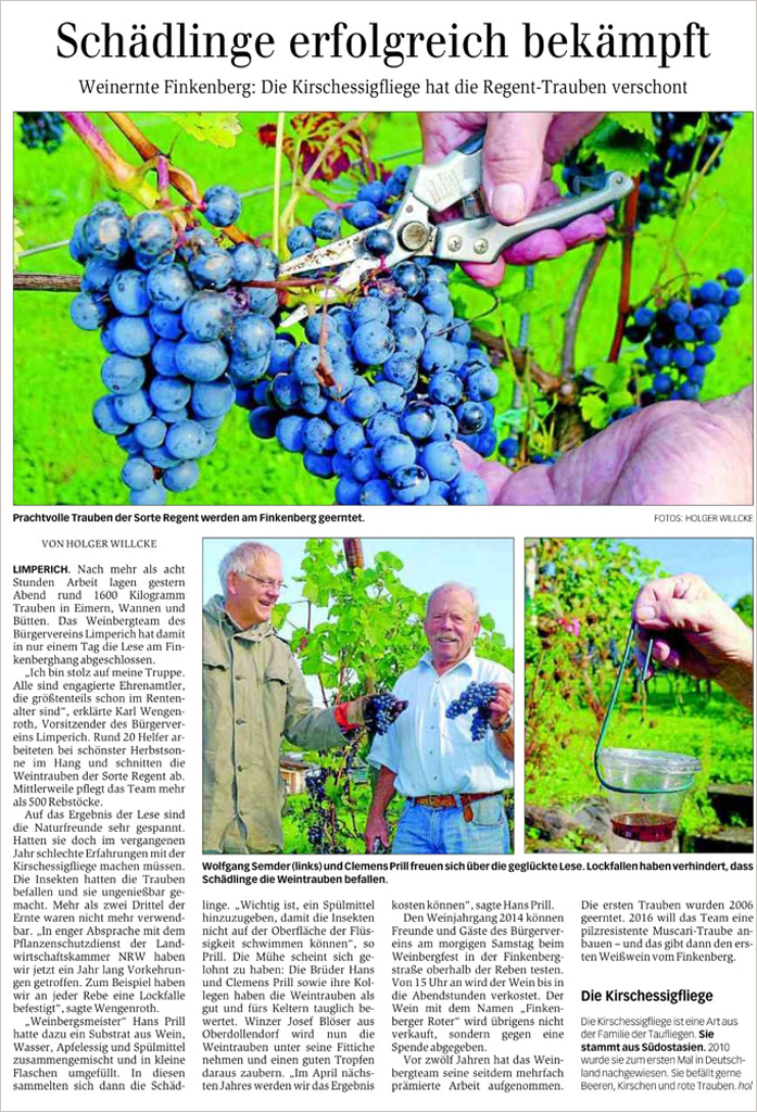 Am 24. September 2015 fand die diesjährige Weinlese auf dem Finkenberg statt. Das Weinbergteam kann stolz auf das Ergebnis sein: 90° Oechsle, ca. 1,6 Tonnen und kein Befall durch die Kirschessigfliege. Scheinbar haben sich die Maßnahmen gegen die Kirschessigfliege ausgezahlt und das gute Wetter auf diesen Erfolg eingezahlt.